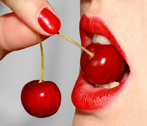 Oh, awful him ! She can perceive his naughty smile but..really, there was no sous-entendre! Well, now that he makes her think of it...cherries go usually in pairs, they are round, silky...a little small, but to be small they are no less evocative of other roundnesses that go in pairs. No idea ? Of course, of course...he's so naïf !